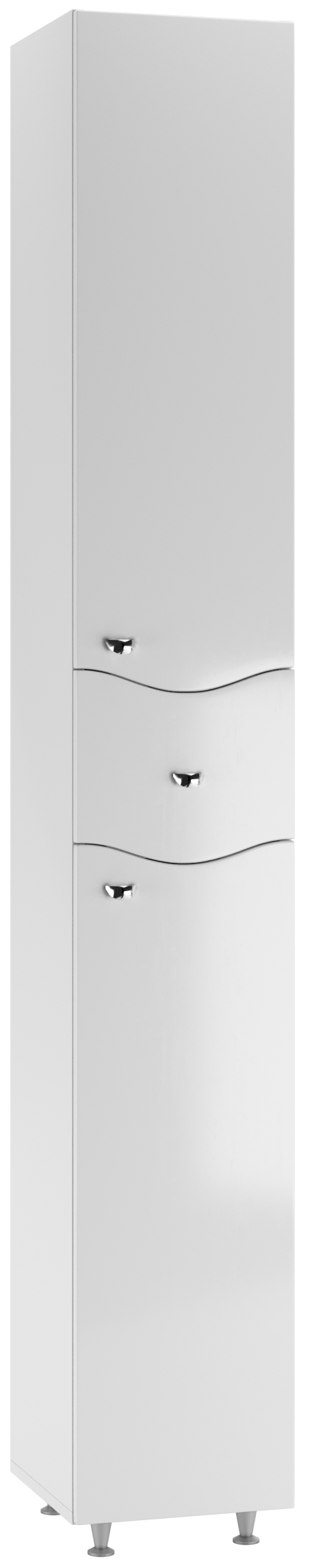Пенал напольный 30 Волна с верхним ящиком В1 правый АЙСБЕРГ– это функциональное решение для хранения в ванной комнате. Он станет незаменимым предметом мебели для ванной, обеспечивая порядок и удобный доступ к необходимым вещам. Мебель представлена в безупречном белом цвете с глянцевым покрытием, что добавляет элегантности и стиля.